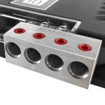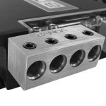 Características:  -4 salidas a 2 -Aluminio 100% -Soporta hasta 2000A -Resistente a la corrosión -Par: tornillos rojos y tornillos negros -Fijación del cable mediante tornillo Allen
